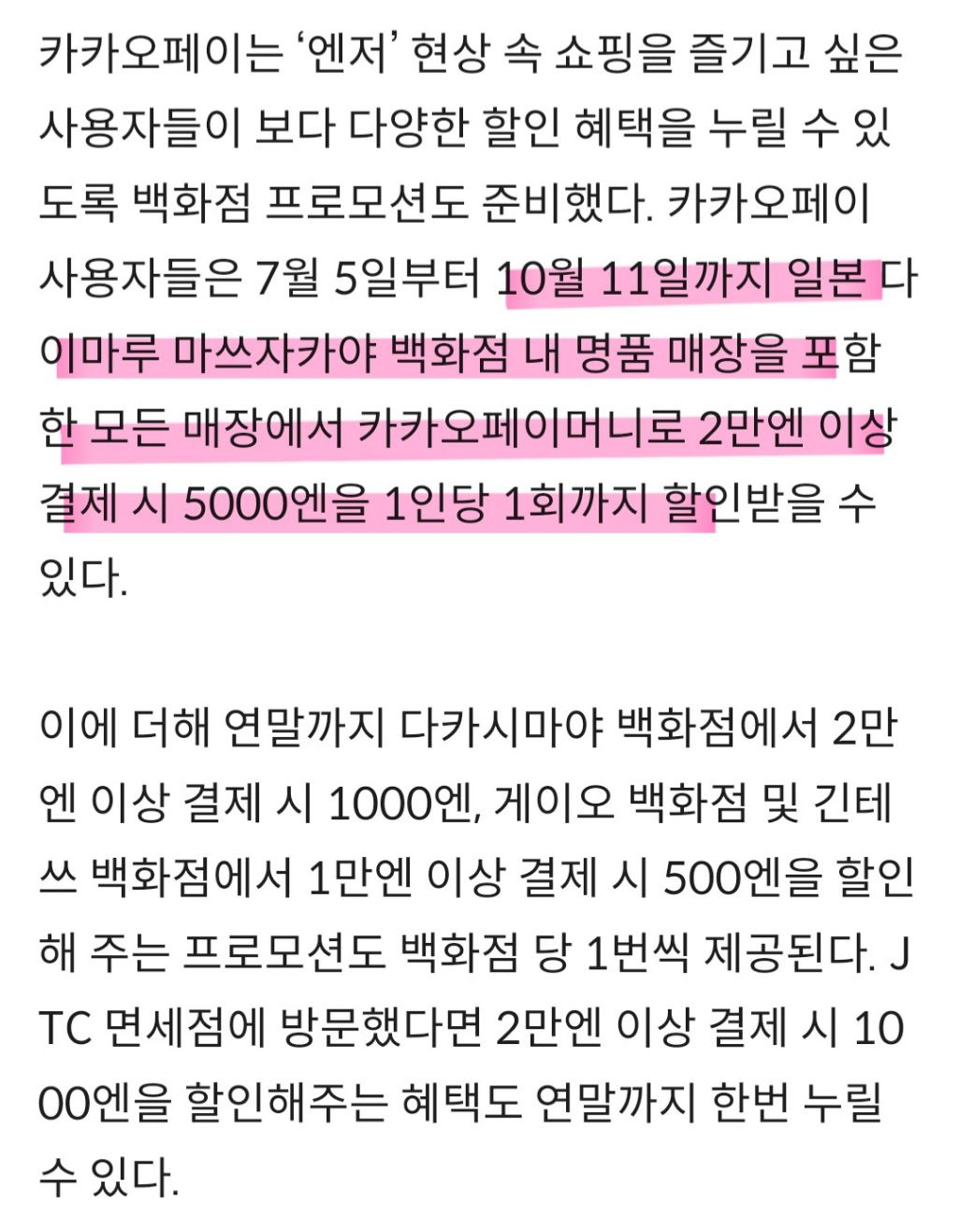 백화점 구매시 제시하면 5% 할인+ 5000엔 할인 중복가능요...