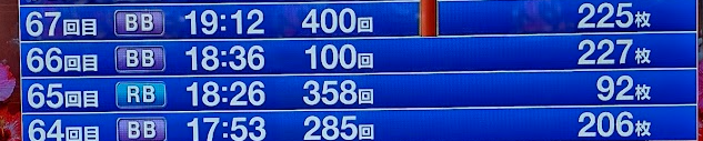 320회전인가에서 주웠는데 40회전 채 안 되서 레귤러...그리고 100회전서 빅 맞더니 400회전 하마리를 타고 나서야 연타가 시작됩니다. 칫 이녀석이 제가 400회전 넘기면 버리는 거 눈치챈 모양입니다.