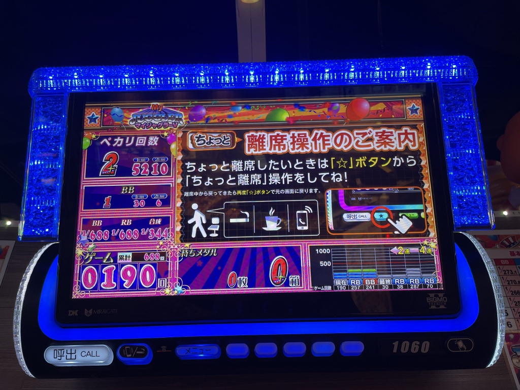 밥도 먹었겠다 식후땡 자그라를 위해 하나비님이 알려주신 시카이로 파칭코로 갑니다. 밥먹는데 근처라서 겸사겸사 들렸는데 사람이 없어 조용하네요. 마이자그라 굴러댕기는거 앉아거 몇판 쳤는데 바케1 보고 다른 업장으로 이동합니다.
