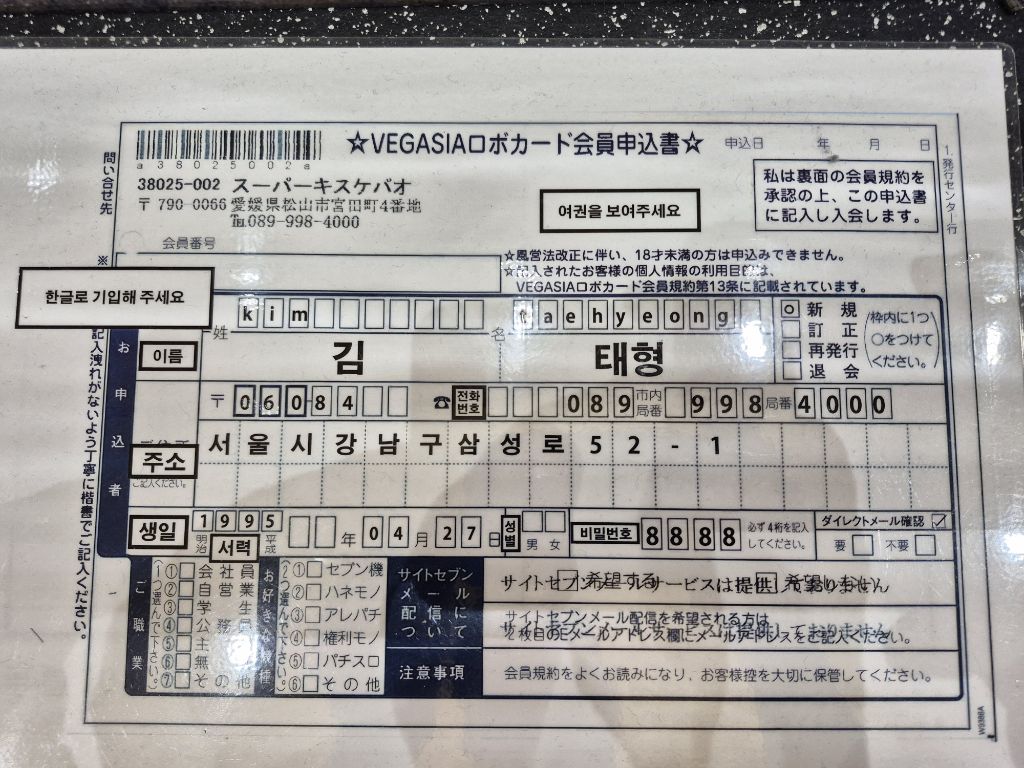 한국인 친화적인 도시 답게 피오에 회원가입 예시문이 저렇네요ㅋ