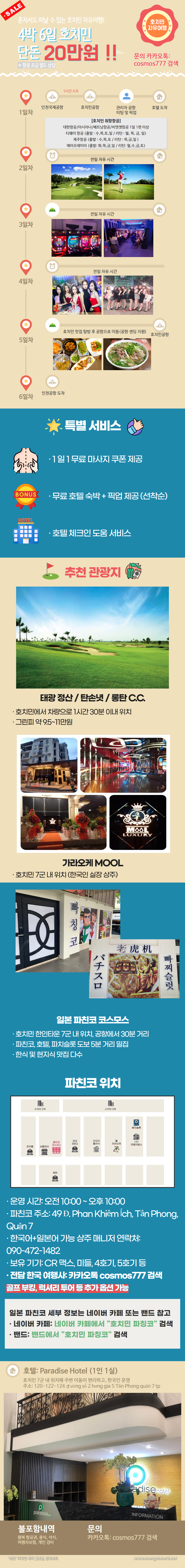 아래 카톡으로 문의주시면 선착순으로 체류기간에 상관없이 호치민 현지 여행비용(호텔비용 + 픽업비용)을 무료로 제공합니다.