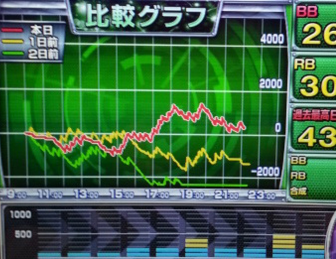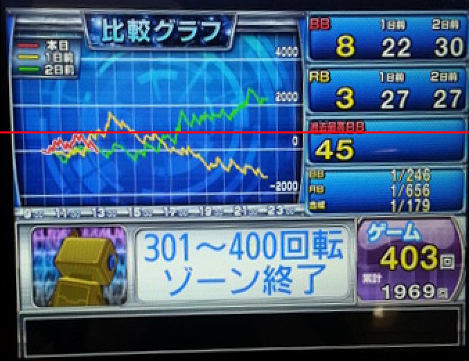 BB RB 가 보이는 것으로 보아 슬롯 그래프다. 위그림처럼 파친코와 슬롯 둘다 저항선과 지지선 MW파형도 포함이 된다.