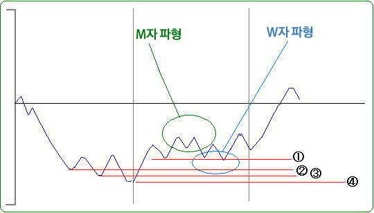 위의 그림처럼 M자 파형과 W자 파형이 동시에 나타날 때는 뒤에 장타가 나타날 수 있는 확률이 아주 높다.
