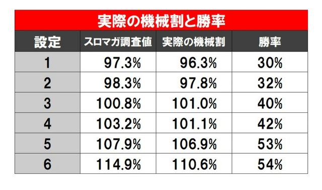 설정1 승률 30% 기타 슬롯들과 비교해서 매우 낮습니다. 거기에 설정6 승률54%.