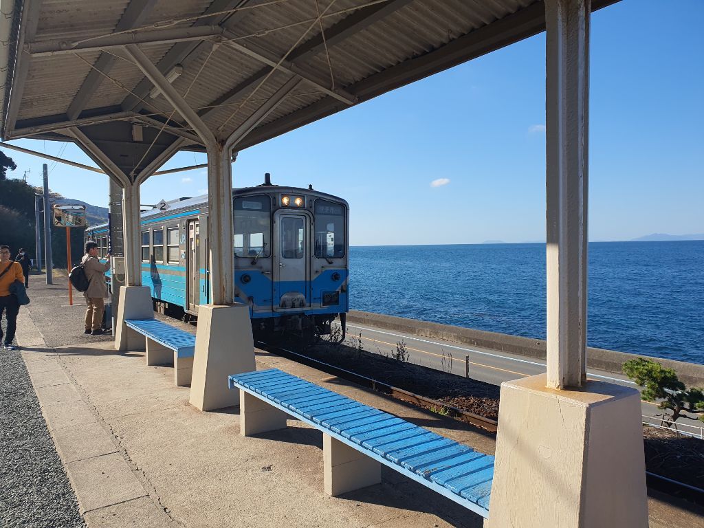 해서 다녀왔습니다 시모나다역에서 걸어서 20분거리에 바다속으로 들어가는 철길이 있어 방문 했습니다 마쓰야마역에서 50분쯤 걸립니다