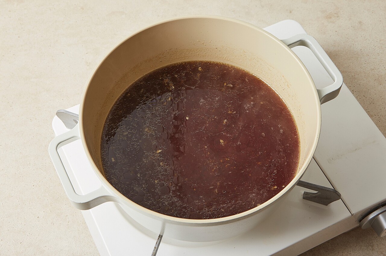 2. 냄비에 물(1 1/2컵)과 찜닭 양념장을 넣어