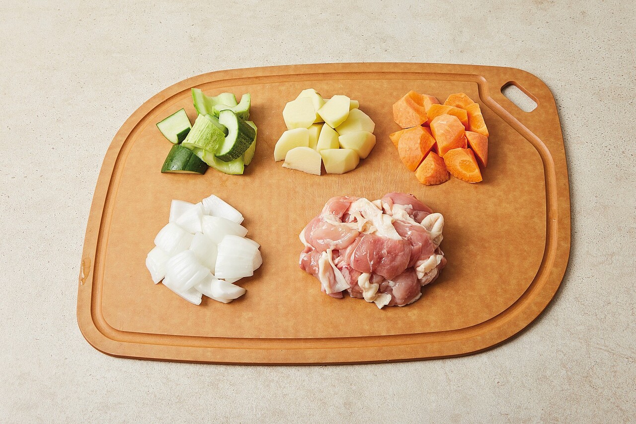 감자와 당근, 양파, 닭다릿살도