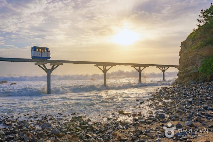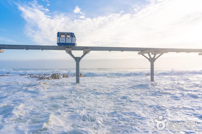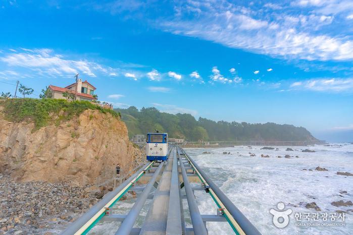 바다 위 레일을 따라 달리는 죽변해안스카이레일