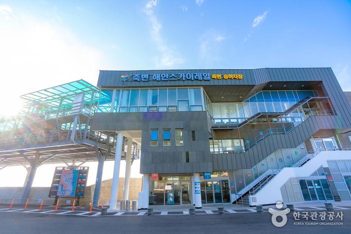 죽변해안스카이레일은 울진 바다를 가장 가까이에서 바라볼 수 있는 모노레일이다. 자동으로 움직이는 무인 모노레일이 죽변항부터 후정해변까지 시속 5km의 속도로 2.4km 구간을 달린다. 중간에 봉수항 정차장이 있지만 표를 살 수 있는 곳은 죽변항과 후정해변 두 곳뿐이다.