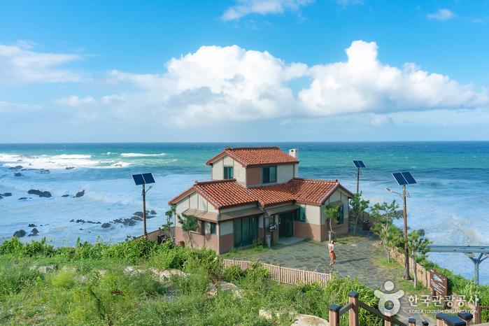 2004년 3월부터 5월까지 방영된 SBS 주말 드라마 <폭풍 속으로> 촬영지다. 극중 김성철(이덕화)이 머물던 곳으로, 언덕 위에 붉은 건물 한 채가 우두커니 서 있는 모습이 꽤 이국적이다. 내부는 코로나19 확산으로 인해 출입이 금지된 상태였다. 집 주변 풍경도 충분히 아름다웠기에 큰 아쉬움은 없다.