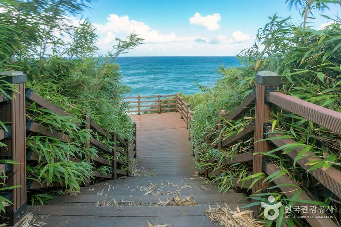 오솔길을 따라 천천히 걸으니 키 큰 대나무가 바람의 방향에 따라 춤추듯 일렁이며 쏴아- 하는 파도 소리를 냈다. 오솔길에는 바다를 조망하는 몇 개의 전망대가 있다. 대나무와 바다가 어우러진 풍경이 한 폭의 그림 같다. 가만히 바라보니 근심과 걱정이 훌훌 날아가 마음이 한결 가벼워졌다.