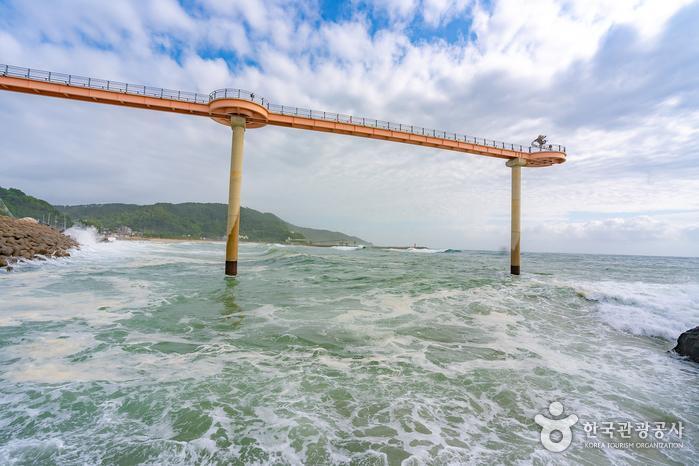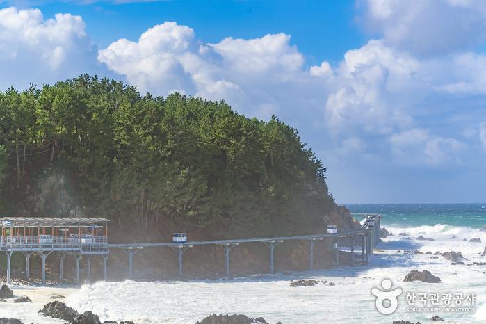 죽변해안스카이레일에서 한 시간가량 떨어진 곳에 등기산 스카이워크가 있다. 높이 20m, 길이 135m에 달하는 공중 바닷길이 멀리서도 시선을 사로잡았다.