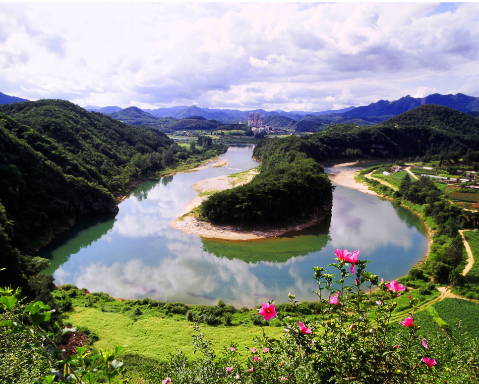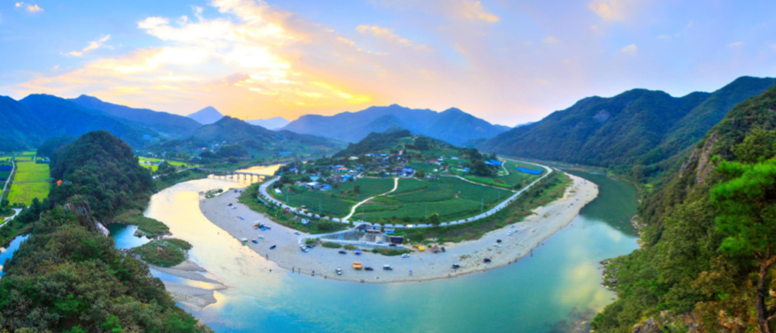 서강변에 자리잡고 있는 한반도 지형은