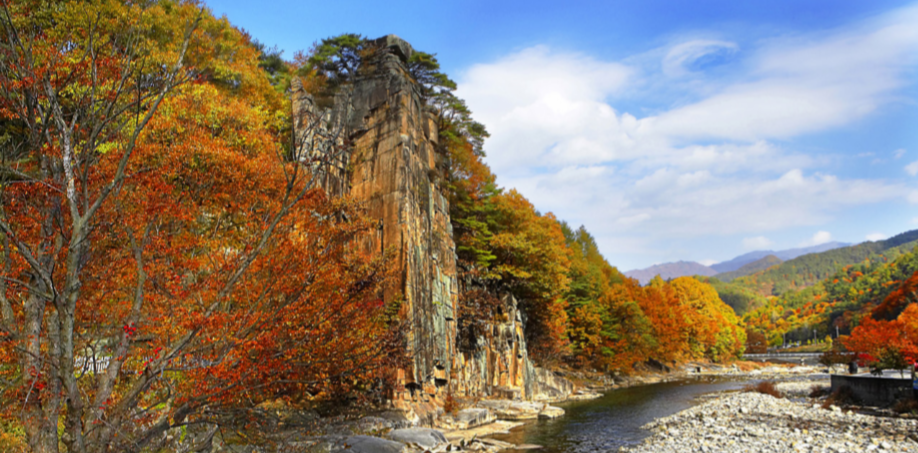 아름다운 단풍과 기암절벽이 병풍처럼 늘어선 모습이 아름답다 하여