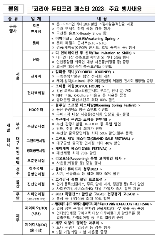 - 관세청·면세점협회, 5.1~31. 「코리아 듀티프리 페스타 2023」개최 -