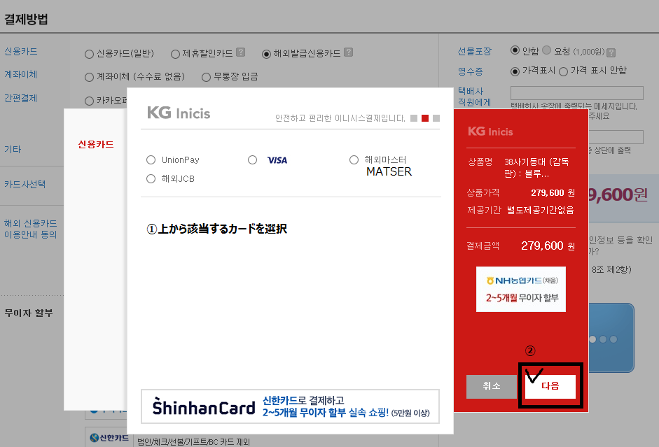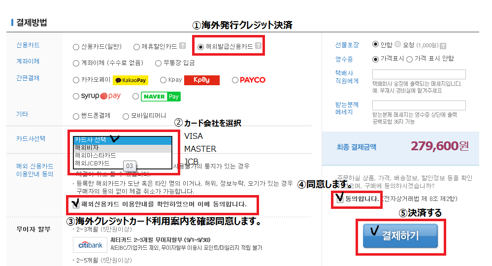 決済ページ海外配送を選択し英文の住所とお名前を記入後決済に進みます。