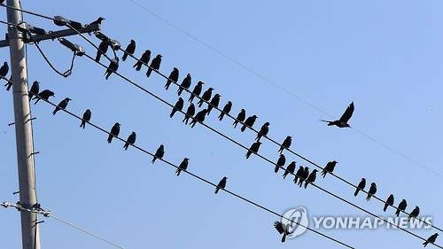 오선지 위 음표처럼 전봇대 위로 까마귀떼가 앉아 휴식을 취하고 있다
