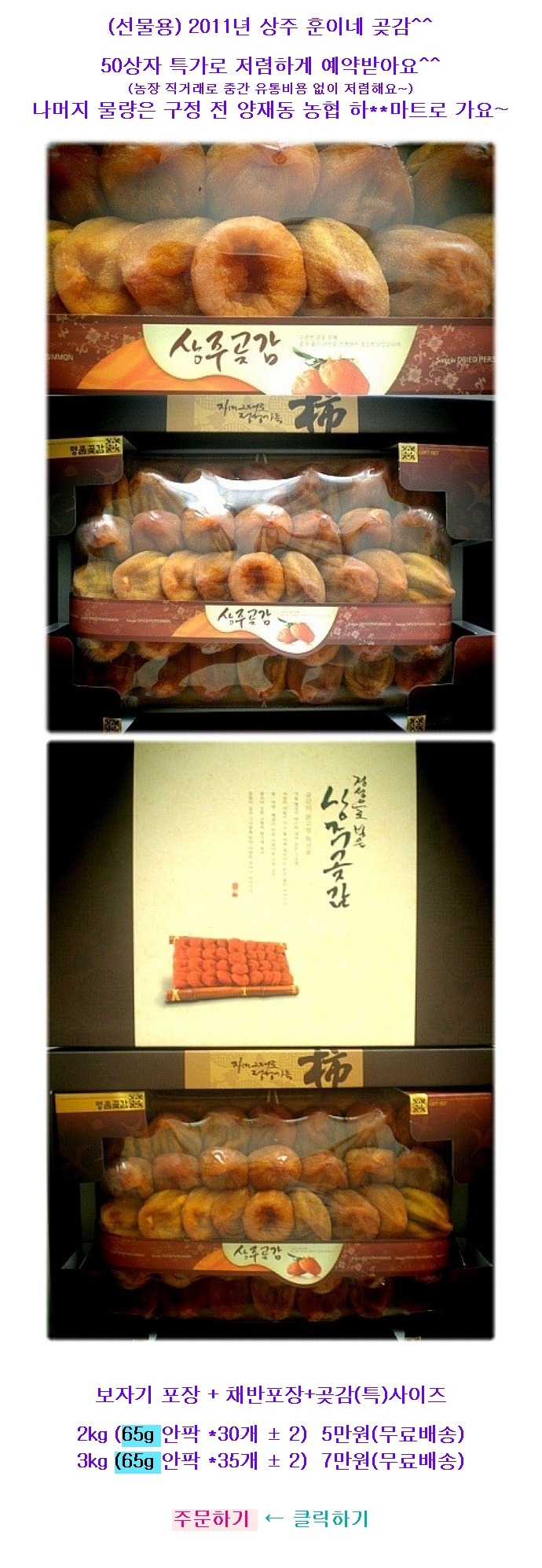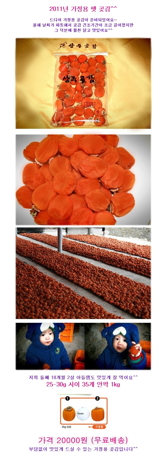 가족이 운영하는 유아용품 카페에서 아주머니들의 요청으로 상주 훈이네 곶감 공동구매를 진행하여