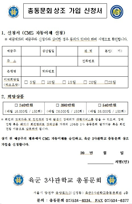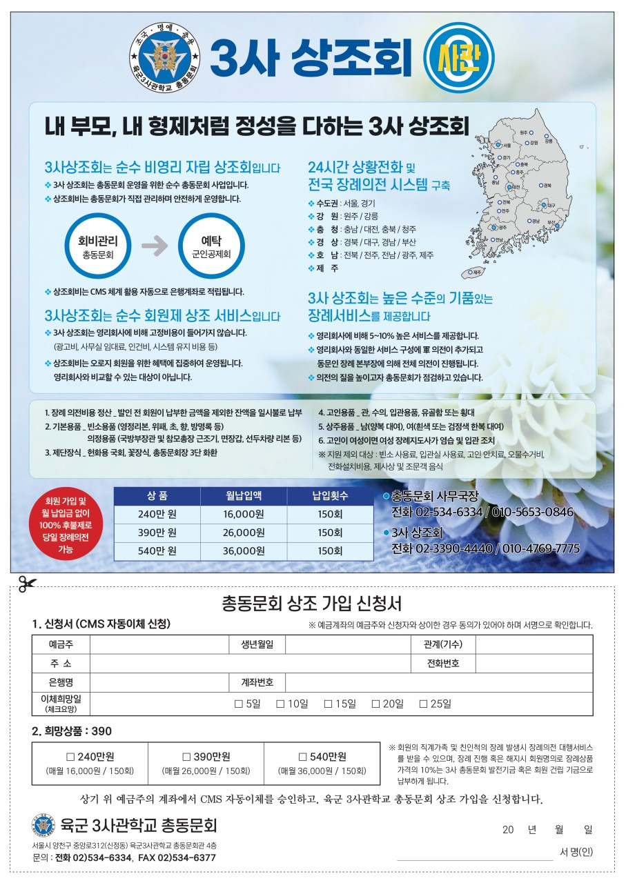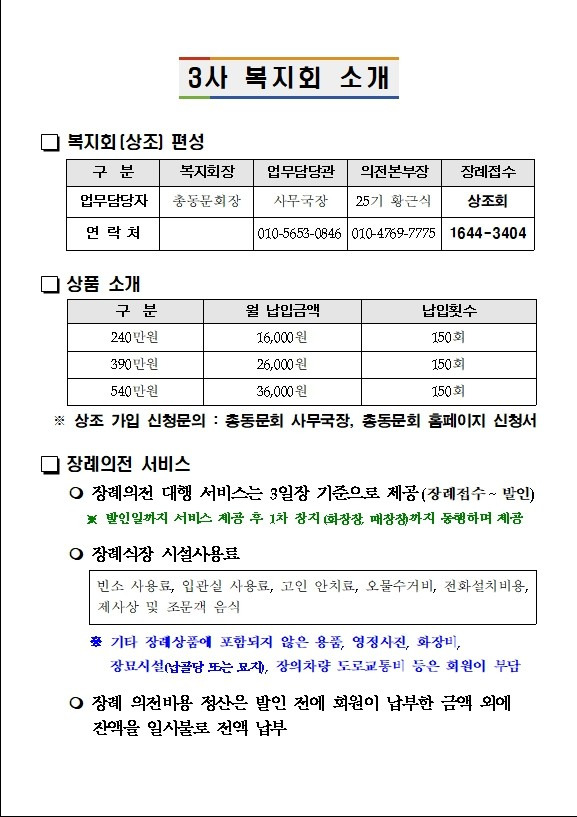 #총동문회공지 : 총동문회 3사 복지회(3사상조회) 소개 작성자한우리에9이철성|작성시간26.03.19|조회수136 목록 댓글 0 글자크기 작게가 글자크기 크게가 #총동문회공지 : 총동문회 3사 복지회(3사상조회) 소개상조회원가입신청서.hwp1.15MB 첨부파일첨부된 파일이 5개 있습니다. jpg 파일 5_jjiUd018svc1gwlzx5rbp6ro_dphdha.jpg 다운로드 png 파일 c_cjiUd018svco975enqa3ymk_dphdha.png 다운로드 hwp 파일 상조회원가입신청서.hwp 다운로드 jpg 파일 5_hjiUd018svc21zds2ajt8to_dphdha.jpg 다운로드 jpg 파일 5_bjiUd018svc1c1mez2wg3yw5_dphdha.jpg 다운로드 다음검색 현재 게시글 추가 기능 열기 북마크 신고 센터로 신고 댓글 댓글 0 댓글쓰기 답글쓰기 댓글 리스트