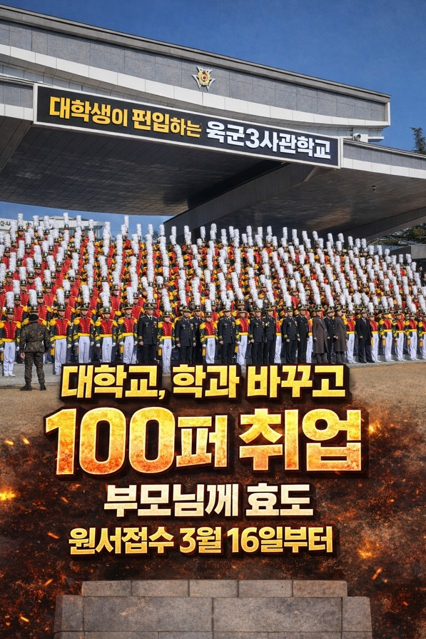 | #총동문회공지 : 2026년도 사관생도 모집을 위한 홍보활동 참여 (글 : 사무총장 34기 김영민) 안녕하십니까? 총동문회 사무국장입니다. 모든 동문님들께서도 아시고 계시겠지만 현재, 학교에서는 2026년도 사관생도 모집을 위해 전 장병 및 사관생도들이 총력을 기울이며, 혼신의 힘을 다해 홍보 활동 중에 있습니다. 이에, 우리 5만 동문의 힘을 함께 보태야 하는 절대절명의 상황임을 다시 한번 더 말씀드립니다. 오늘 학교에서 아래 자료를 보내오면서 개인별 카카오톡 프로필 사진과 배경 등에 활용해 주시기를 부탁하였습니다. 그래서, 모든 동문님들께 공유해 드리오니 아래 자료를 다운받아 개인별 카카오톡 프로필 사진 및 배경으로 활용해 주시면 감사드리겠습니다. 다시 한번 더 우리 5만 동문의 힘을 하나로 모아주시기를 간곡히 부탁드립니다. 그러면, 오늘도 좋은 하루 보내십시오. 충성!!! |