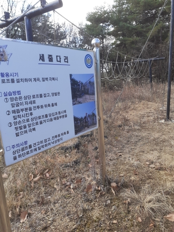 유격훈련장에 두줄과 세줄을 이용한 훈련코스인데 여기는 평지에 설치를