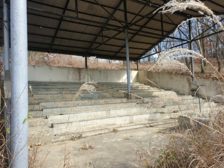 있으며 대형 야외 풍력발전기가 설치 되였다, 유격장은 몇년동안 관리부실도 폐허나 다름이