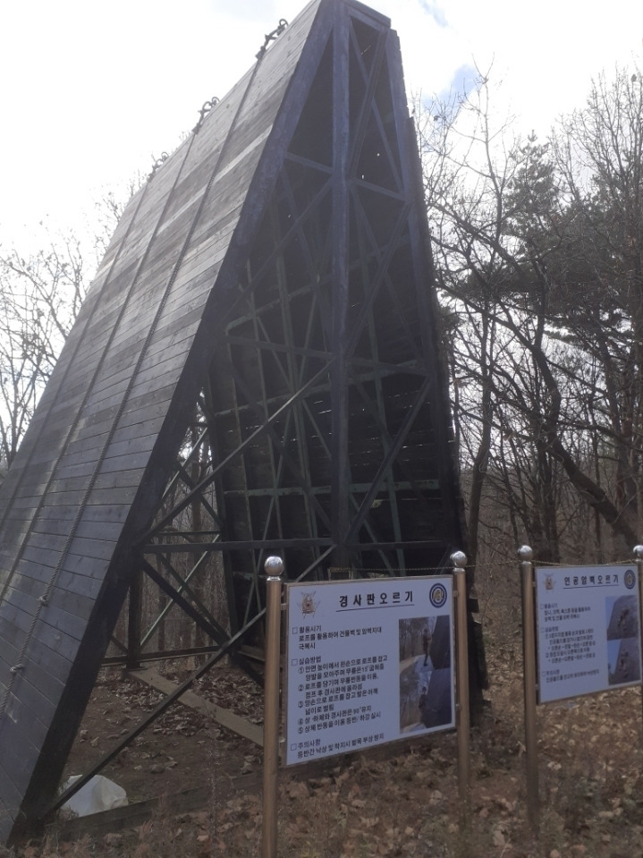 우리때는 현장감있게 절벽에 설치하여 훈련을 받았는데 평지에