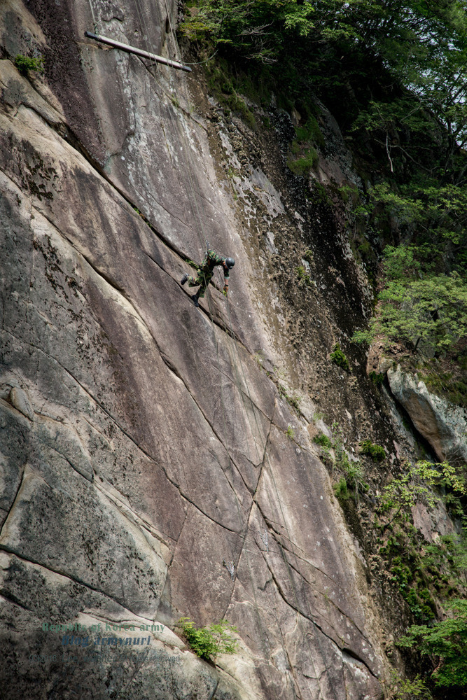 위 사진 절벽을 뢰펠을 이용한 하강 하는 훈련인데 보기만 해도 아찔하다