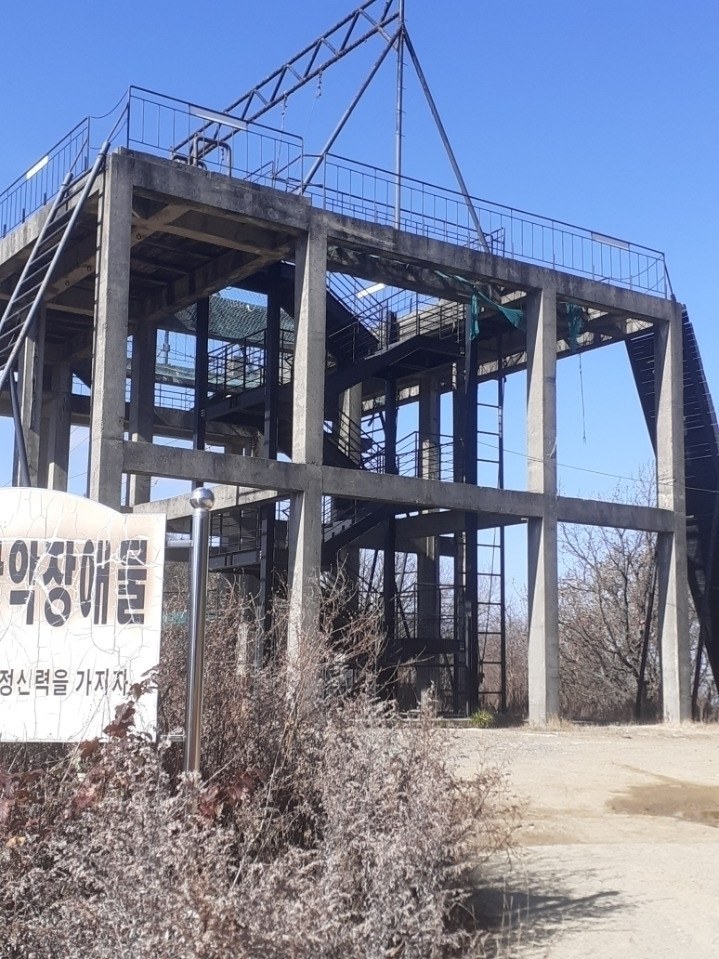 세워져서 우리가 기초유격훈련을 받았는데 학교에서 철거되여 여기에 설치가가
