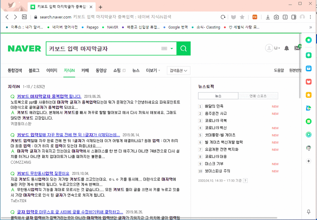 끝까지 타자를 치고 마우스로 다른 곳을 클릭하면 마지막 글자가 중복입력되네요.