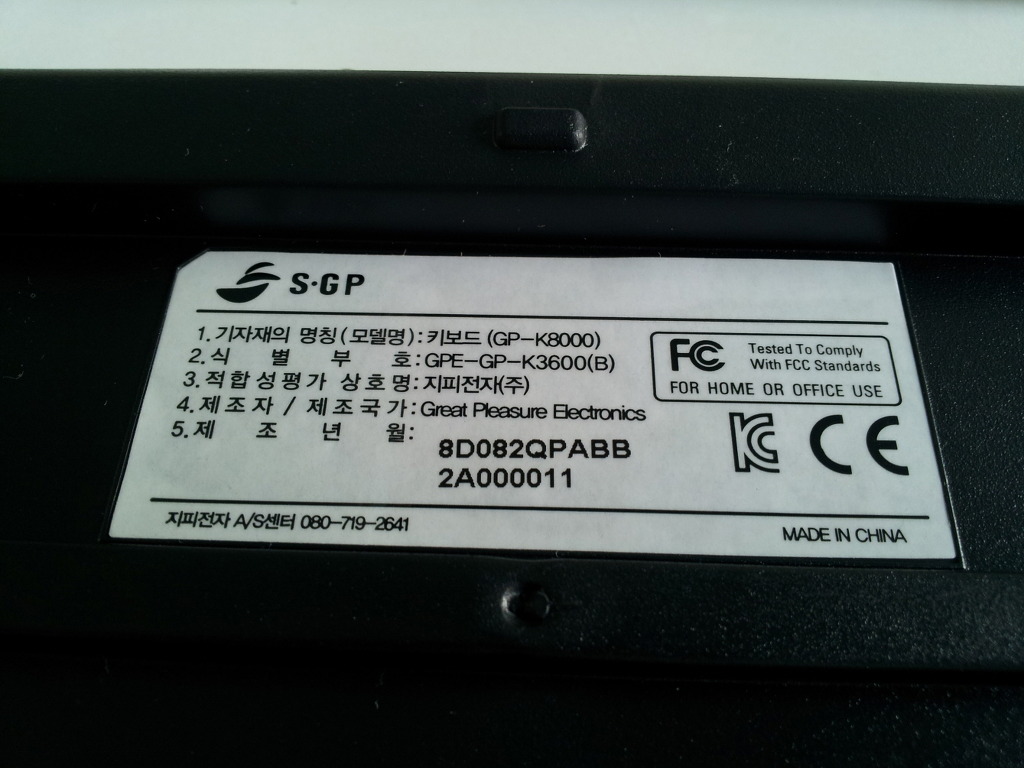 지피전자 A/S센터(080-719-2641)를 통하여 시중 제품들과 동일한 조건으로 무상수리보증을 받을 수 있습니다. 지피전자의 뜻이 큰 기쁨을 주는 전자기기회사라는 속뜻을 지니고 있군요. 제품 일련번호를 보니 이 녀석은 11번 생산품인 모양입니다. 키보드 각각이 모두 좋은 주인을 찾아 갔으면 좋겠습니다.
