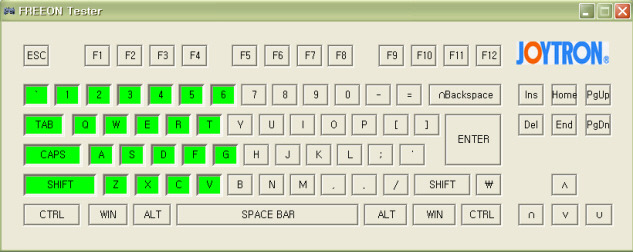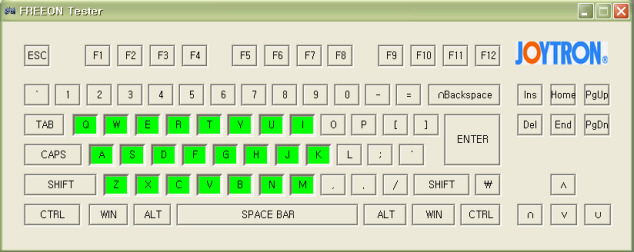 이제 동시입력 부분을 살펴봅니다. 엄밀히 말해 무한동시입력은 아니지만 GP-K8000의 동시입력 능력은 매우 뛰어납니다. 방향키와 조합하여 쓰는 빈도가 높은(오락에서일까요?) 왼쪽의 글쇠들이 충돌없이 동시에 입력 가능합니다.