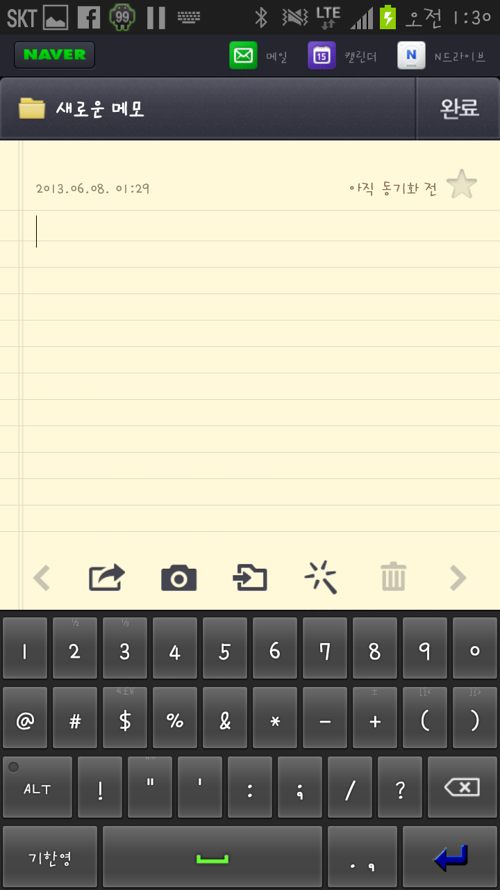 숫자, 특수문자 화면입니다. 여담입니다만 '기한영'이라고 해 놓으신걸로 봐서 개발자분이 약간 나이가 있으신 듯 합니다.