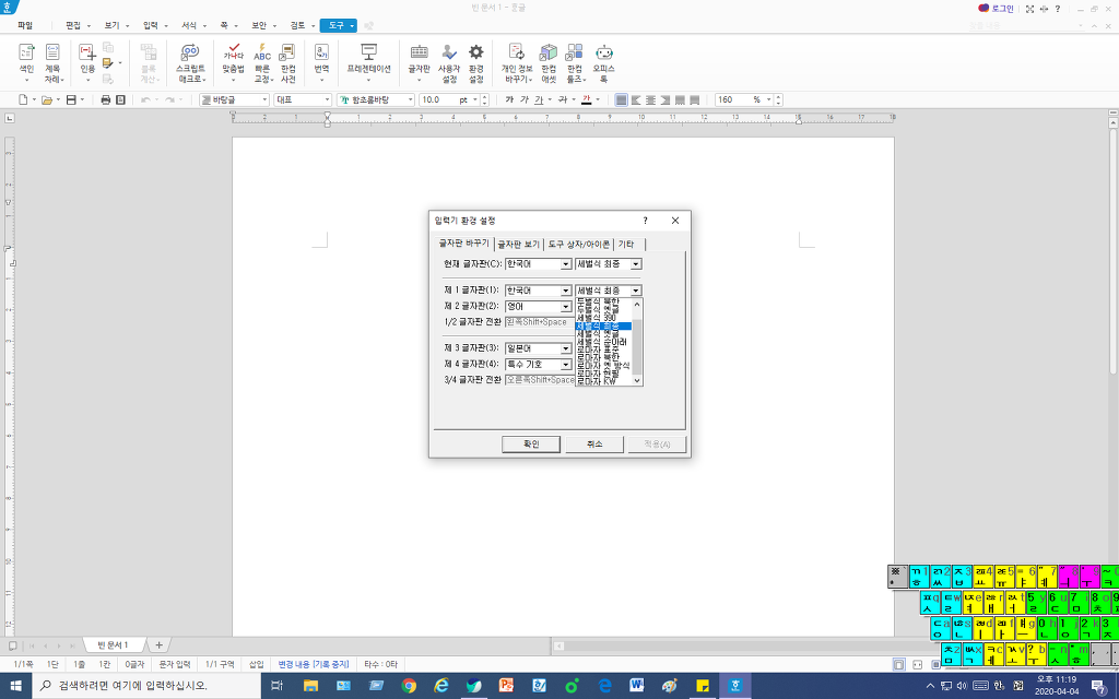 작성자세벌 작성시간 20.05.04 음...http://moogi.new21.org/prg1.htm 이 프로그램이 한컴의 자판 설정을 두벌식/세벌식 바꾸는 것으로 알고 있었는데 최신 버전 한글 프로그램에서는 안 되나 보죠? 한컴에서 설정 바꾸려면 마우스 클릭을 여러번 해야 되어서 불편한데...