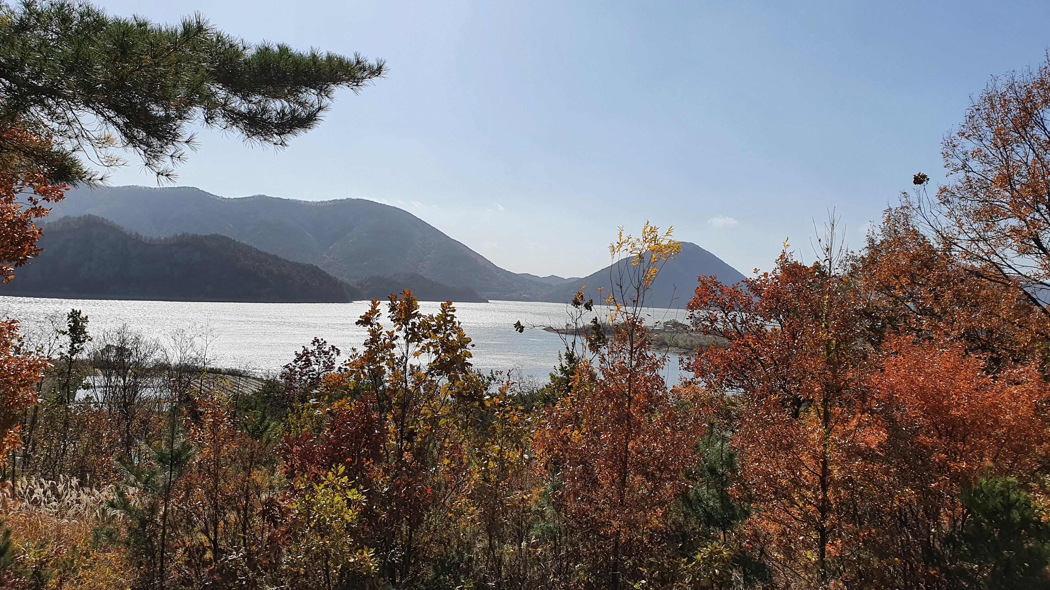 마지막으로 화창한 날씨와 화려한 단풍이 깃든 영천댐 모습입니다.