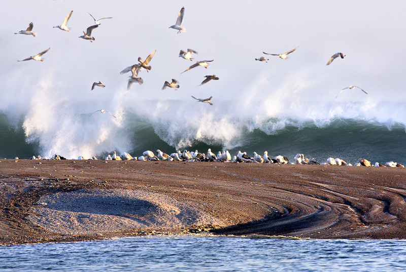 다시 돌아나와 솔섬쪽으로 가는도중 오늘따라 파도가 엄청 높은데 갈매기들이 옹기종기,