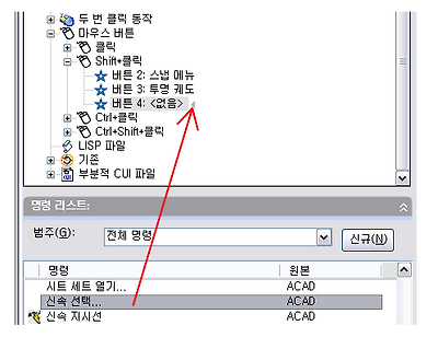 5. 명령 리스트 창에서 추가할 명령을 <파일 이름>의 사용자화 창의 마우스 버튼으로 끌어옵니다.