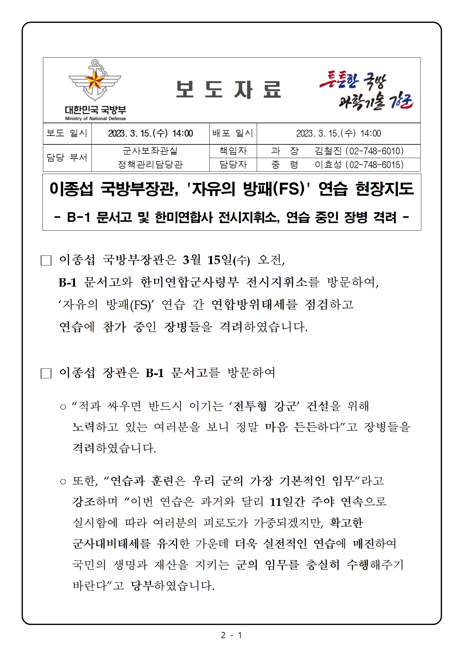 국방부장관, '자유의 방패(FS)' 연습 현장지도 작성자피터팬|작성시간23.03.15|조회수12 목록 댓글 0 글자크기 작게가 글자크기 크게가 다음검색 현재 게시글 추가 기능 열기 북마크 신고 센터로 신고 댓글 댓글 0 댓글쓰기 답글쓰기 댓글 리스트