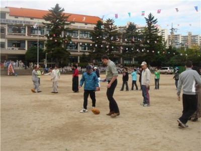 <내빈경기에서 럭비공을 차는 원어민 보조교사>