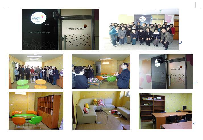 경기도교육청에서 예산 2500만원을 지원 받아서 현대식 학생들이 상담할 수 있는 공간 - 개인상담실, 집단상담실을 갖추어서