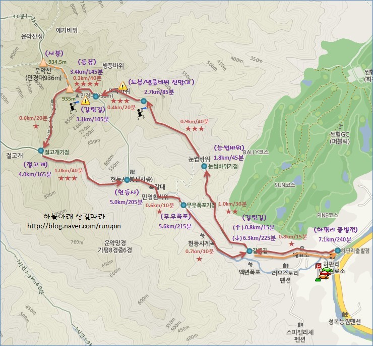 현등사경내~무우폭포,백년폭포~하판리주차장<<약7.1Km ; 4시간가량>>