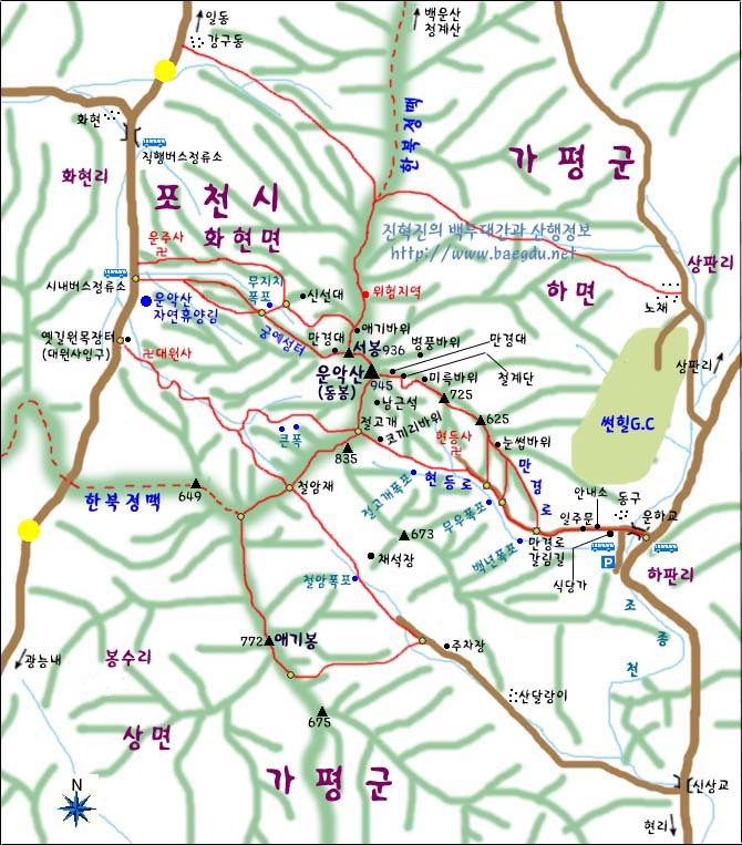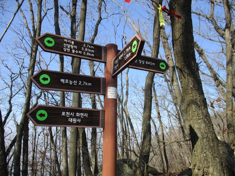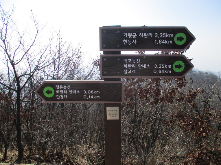 <암릉과철계단>~만경대~운악산동봉(정상)~서봉(되돌아나와)~동봉~절고개기점~<현등로>~
