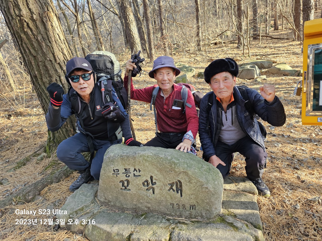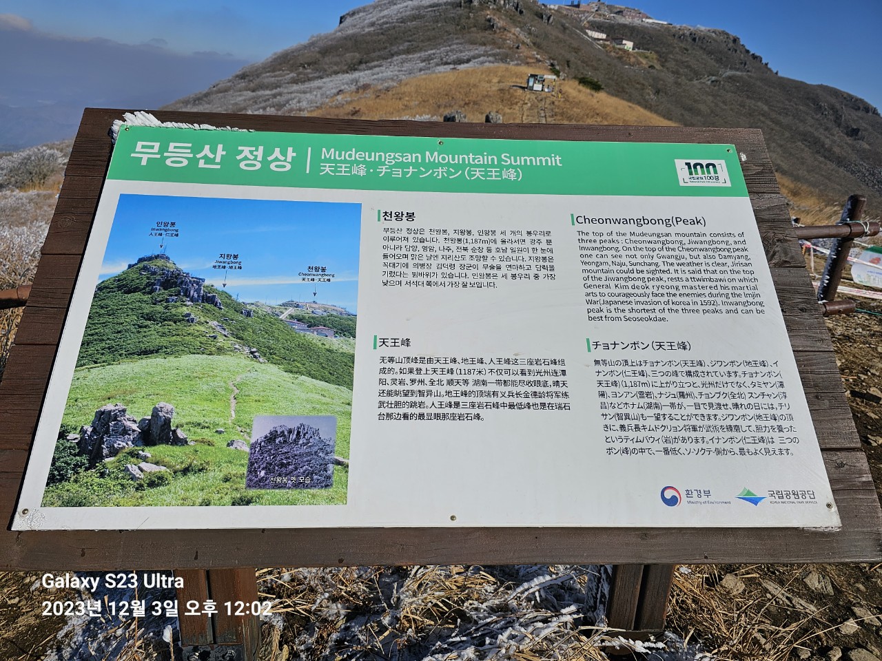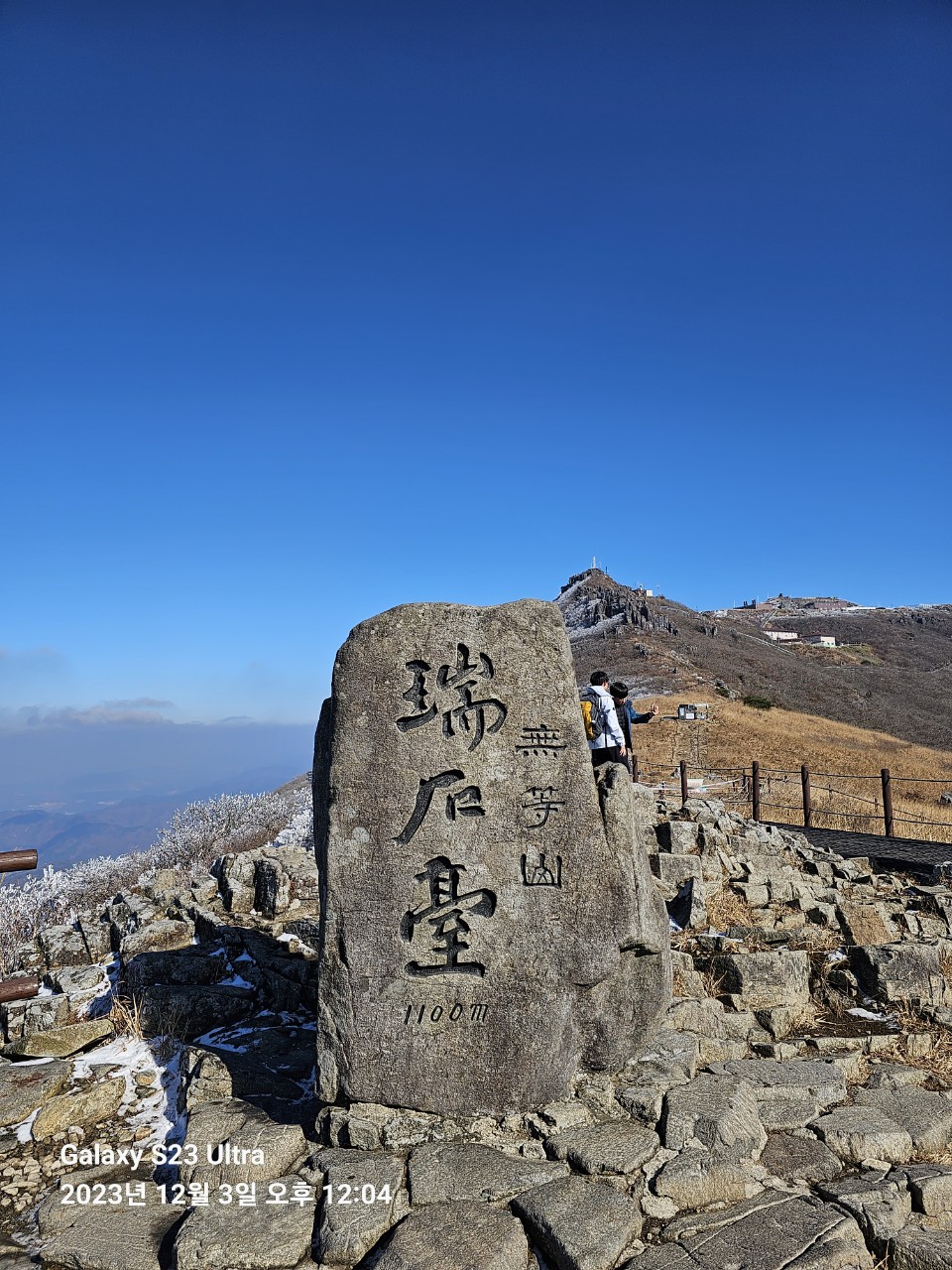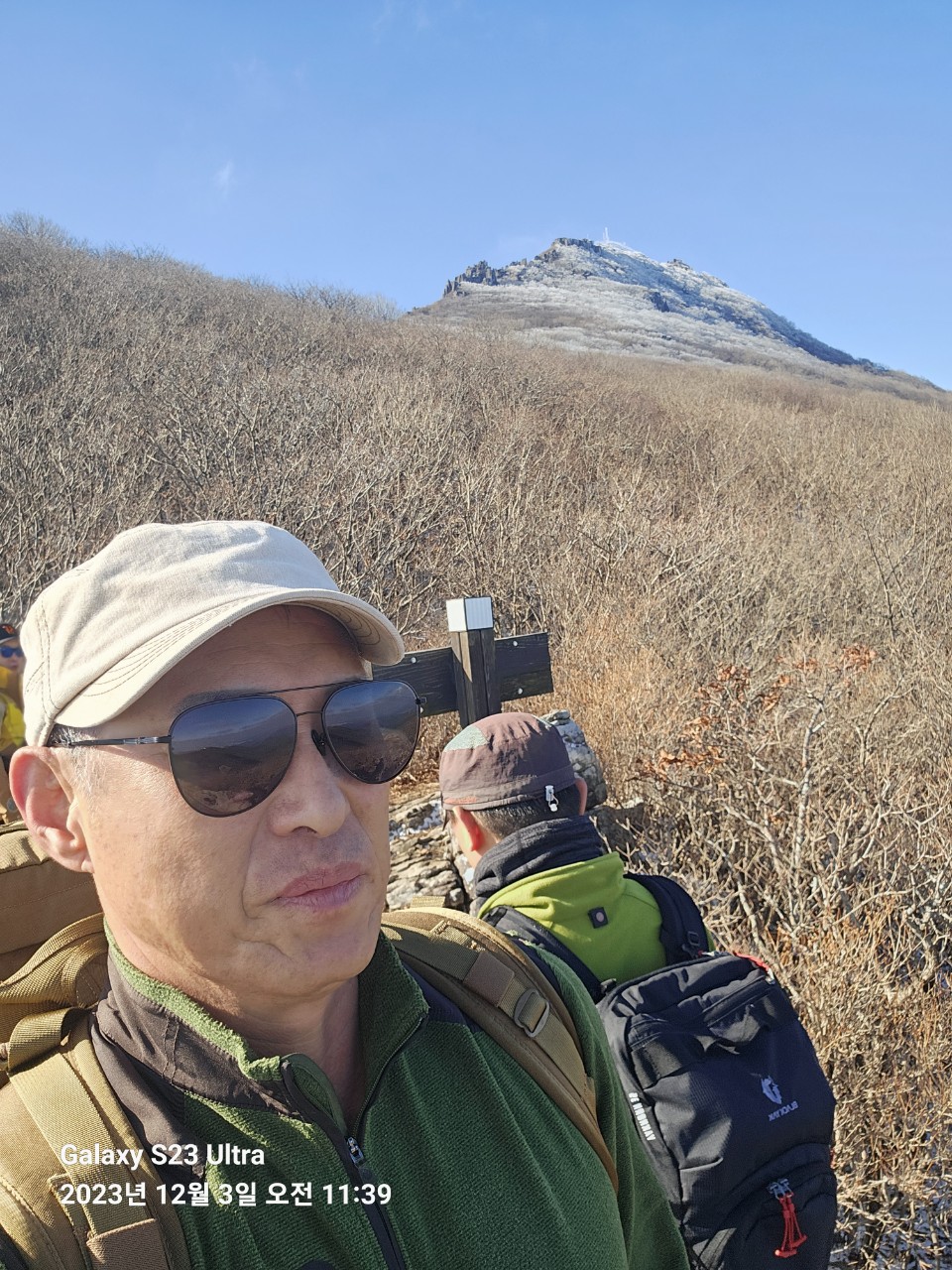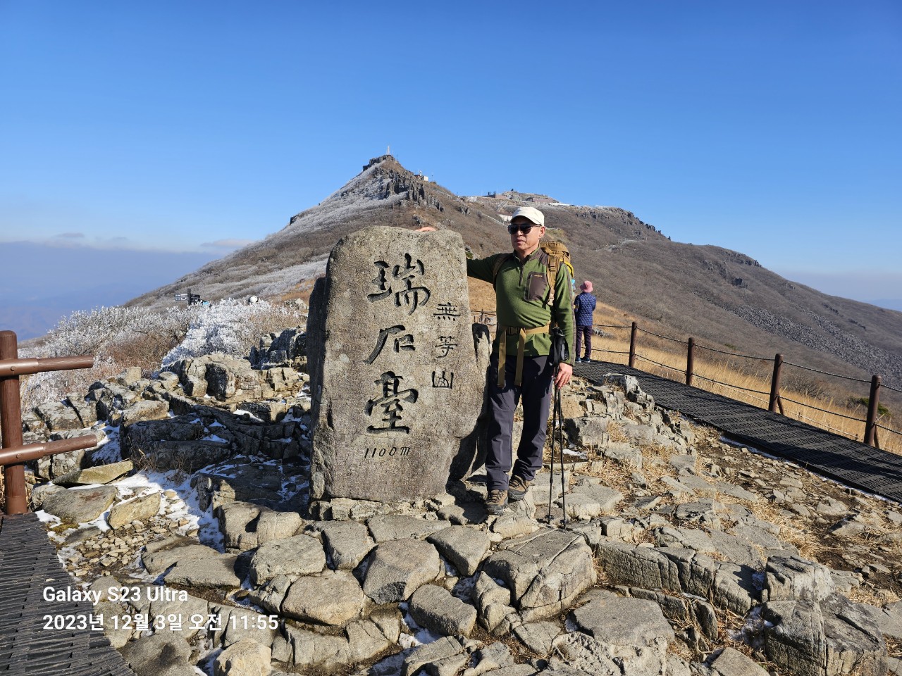 ➴ 천왕봉 정상. 우측에 용인 강사장모습이다. 혼자 셀카 찍을 거란다.