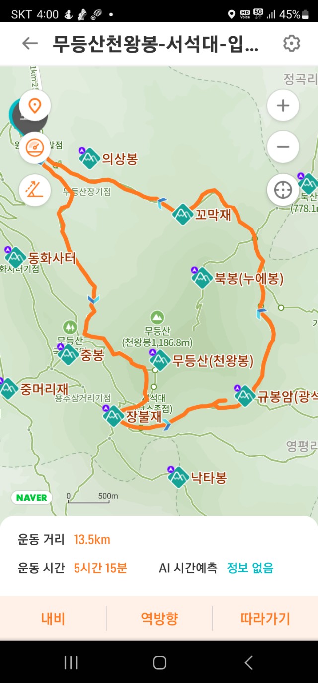 ➴ 13.5km.힘들지는 않은 산행이였다...