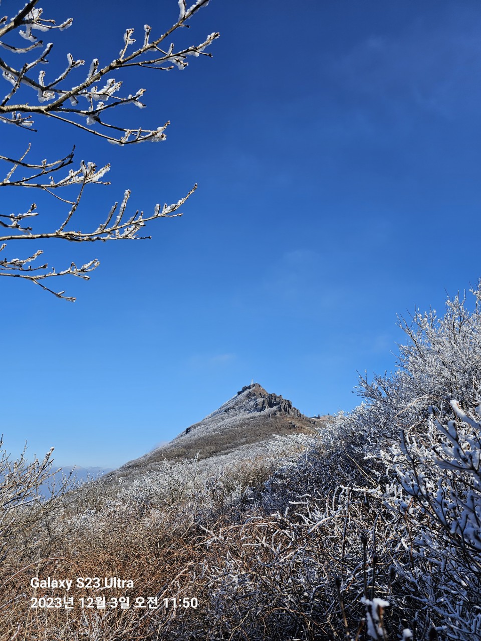 ➴ 멀리 천왕봉의 상고대가 멋져보인다