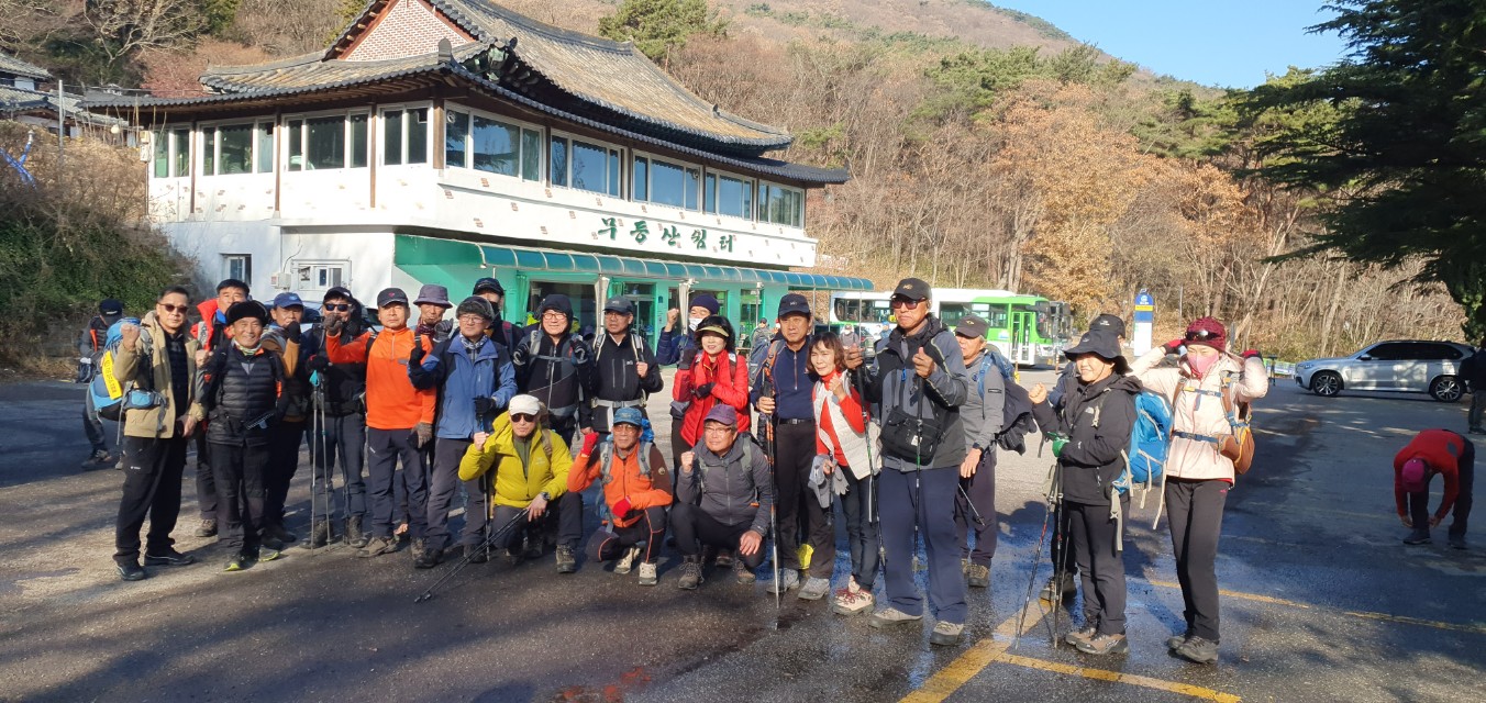 ➴ 09:50 원효사 주차장에서 단체사진 인증샷 남기고 바로 산행시작이다.