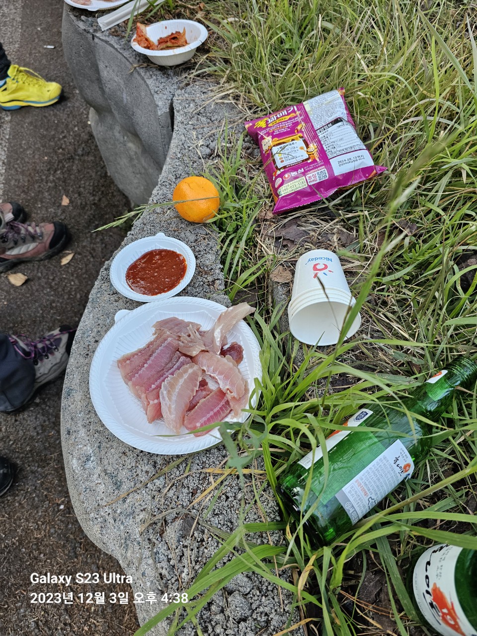 주차장에서 간단히 홍어와 막걸리로서 하산주하려 했는데 국공들이 안된다고 했단다ㅠ