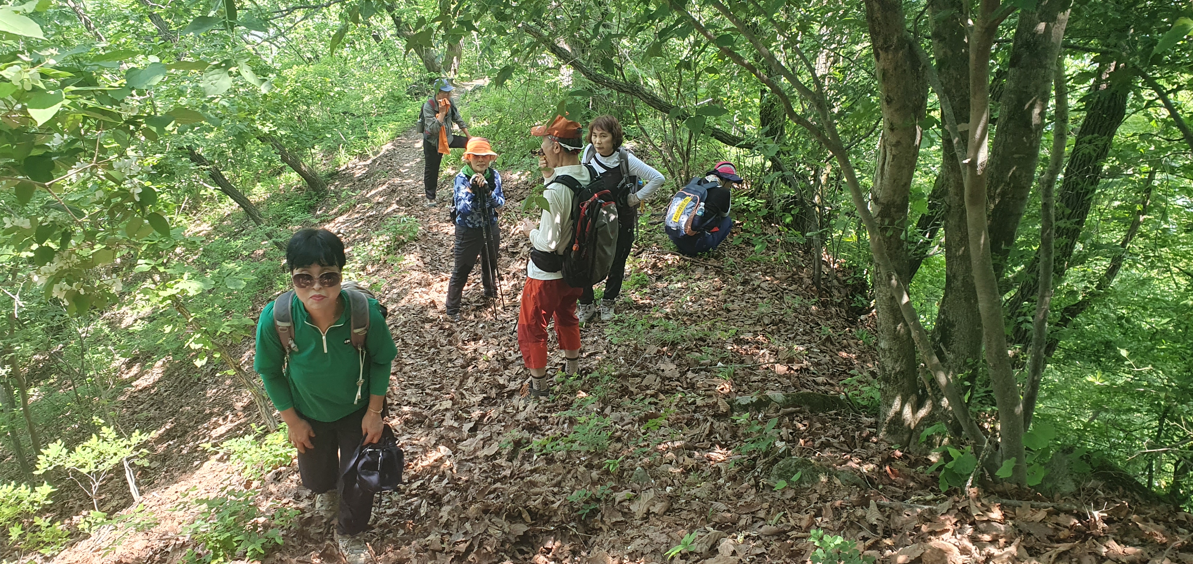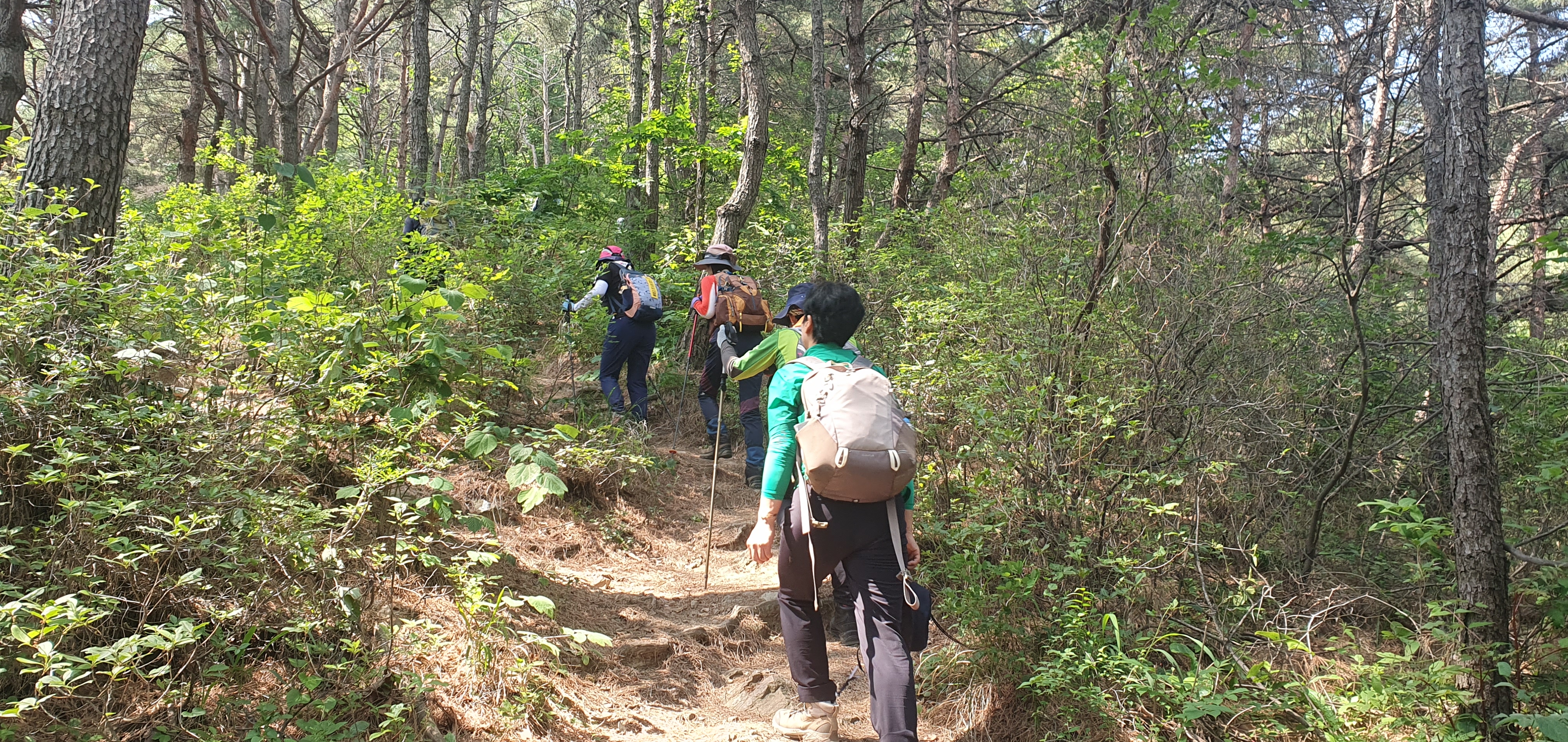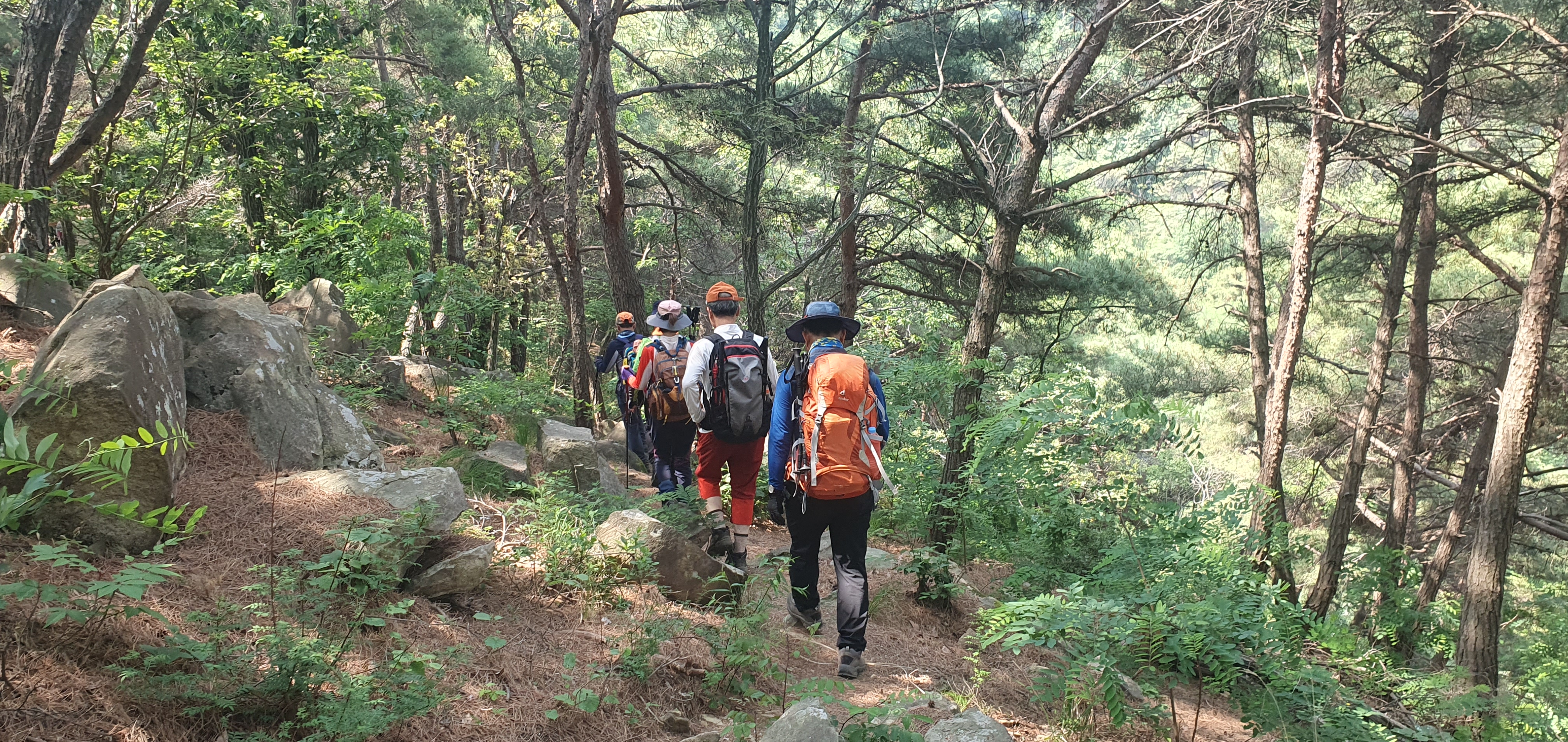 오르막 산행길을 오르고 있는 산우들