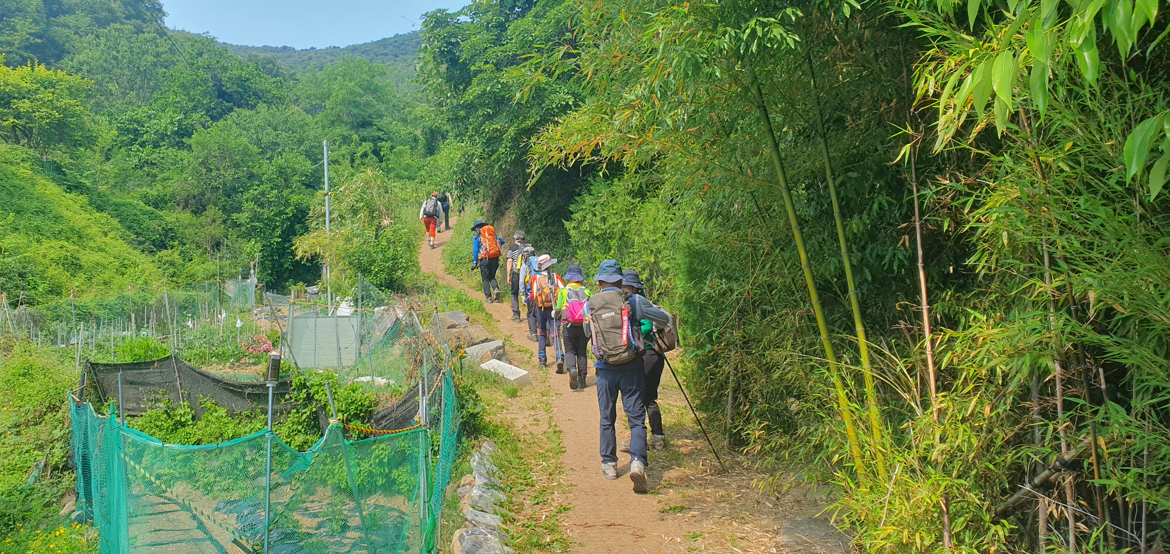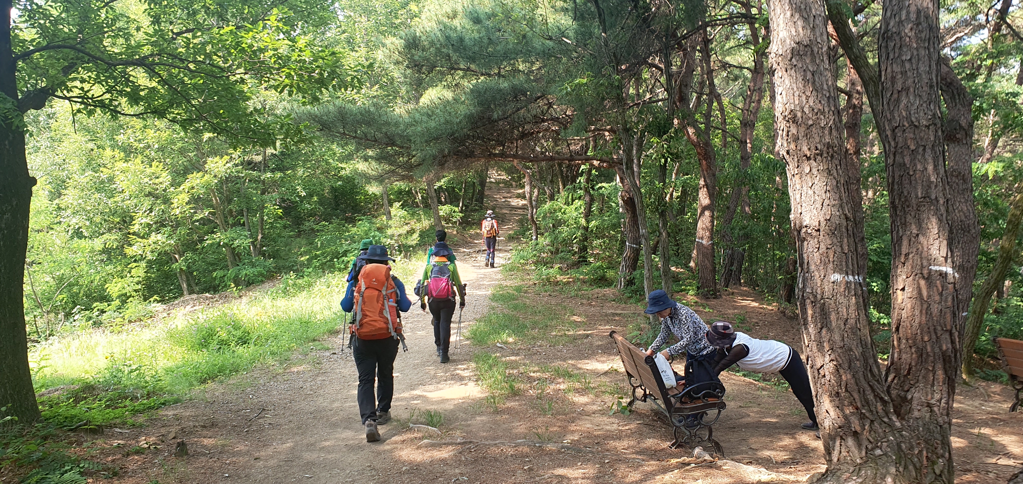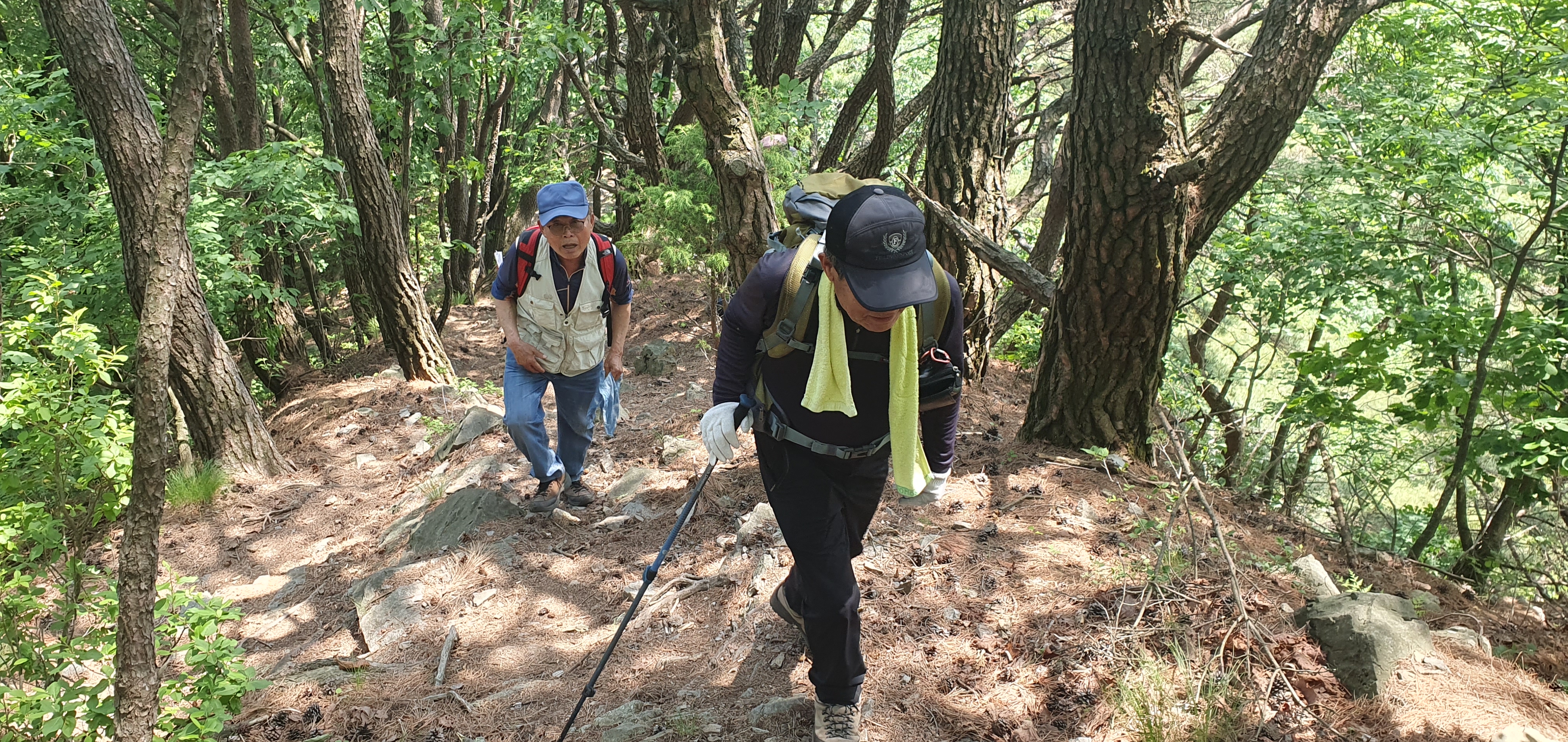 오르막 산행길을 오르고 있는 산우들