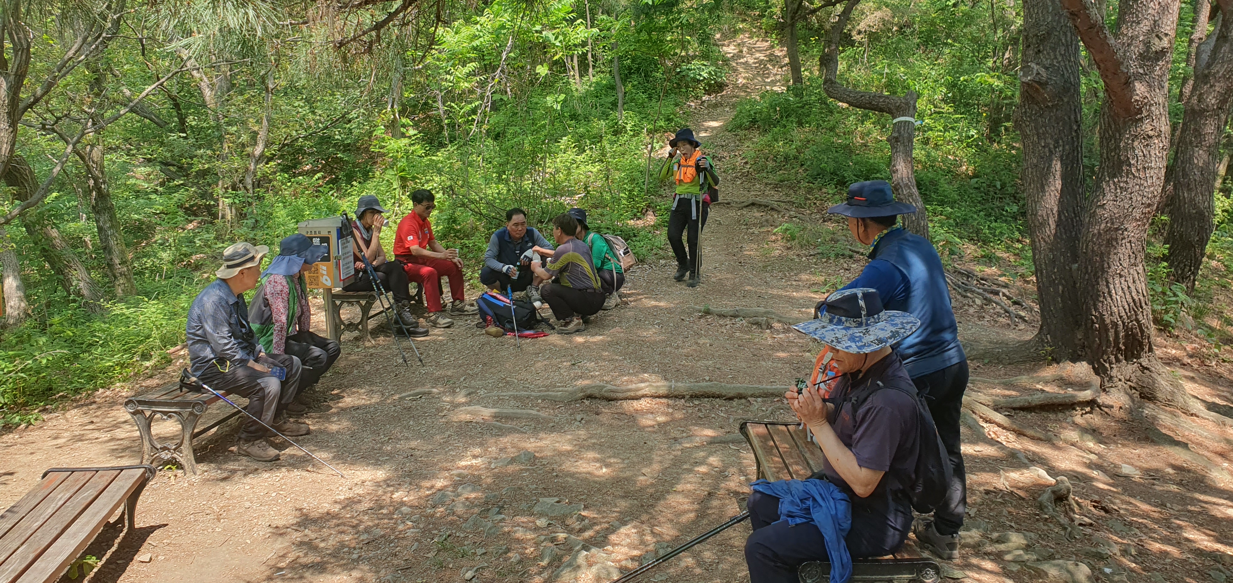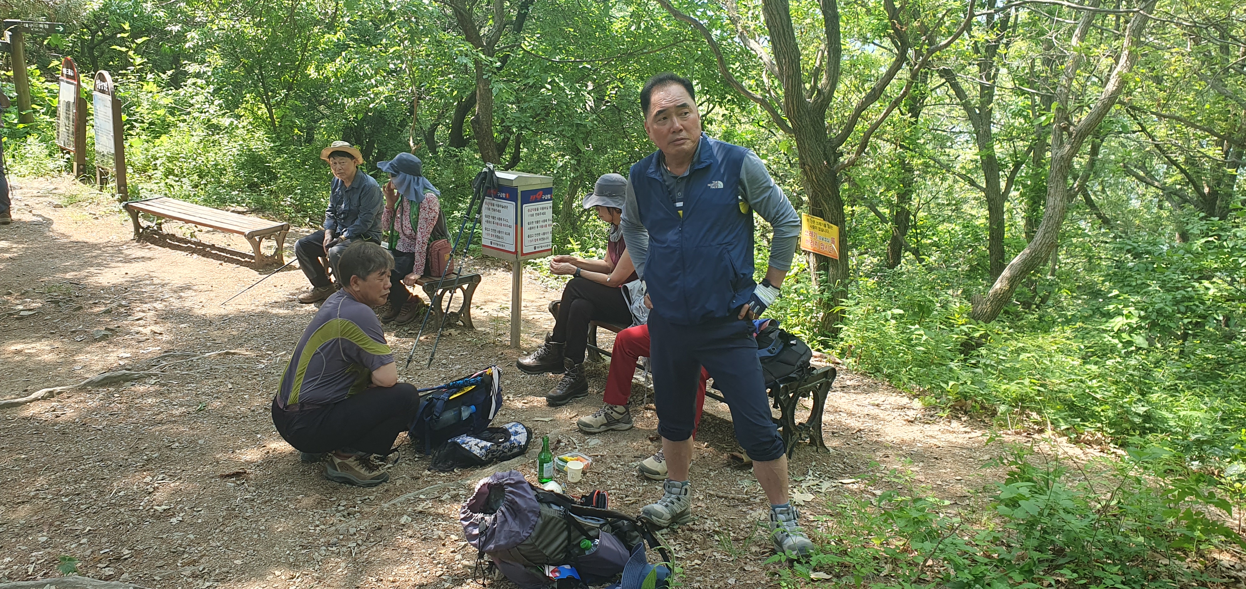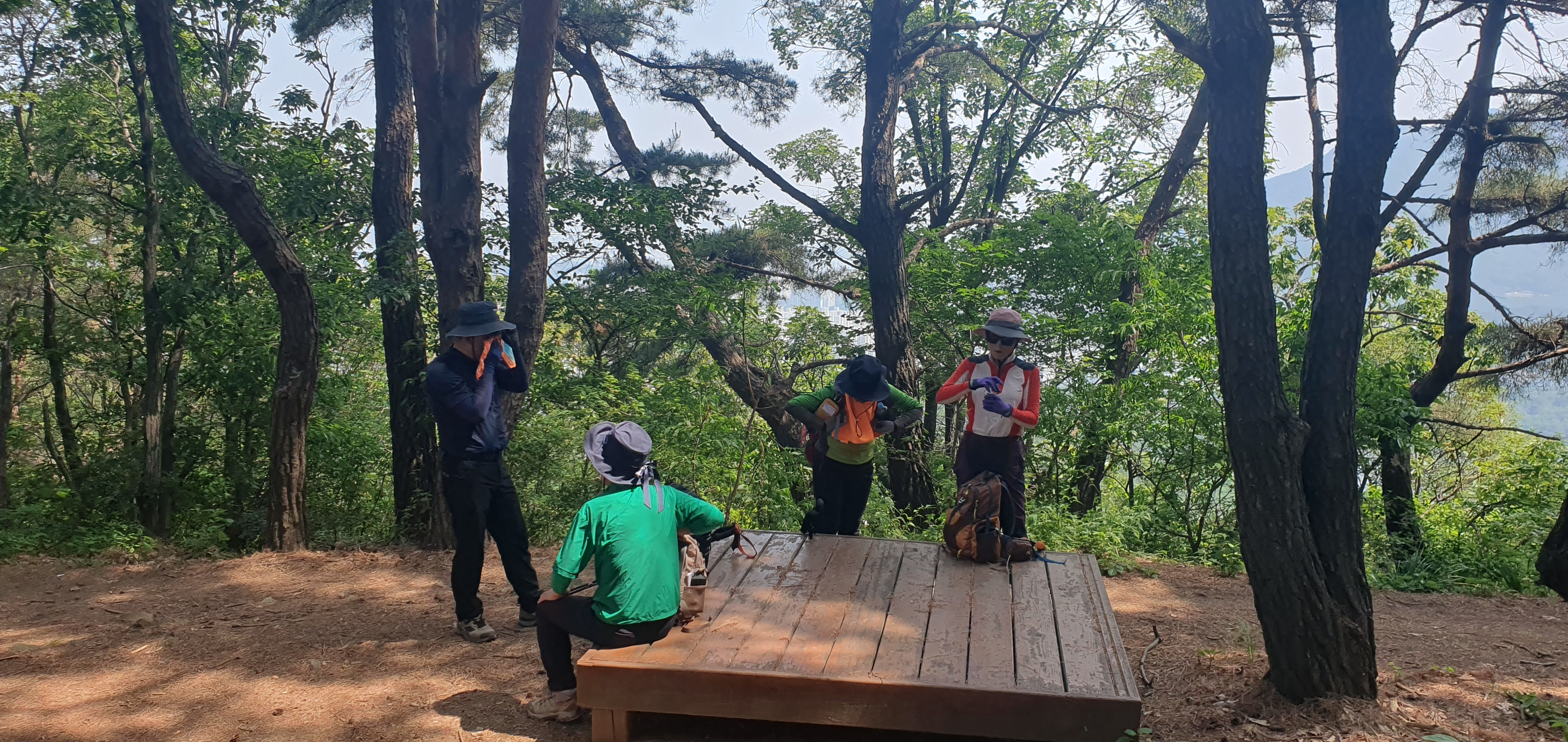 쉼터에서 쉬고 있는 산우들